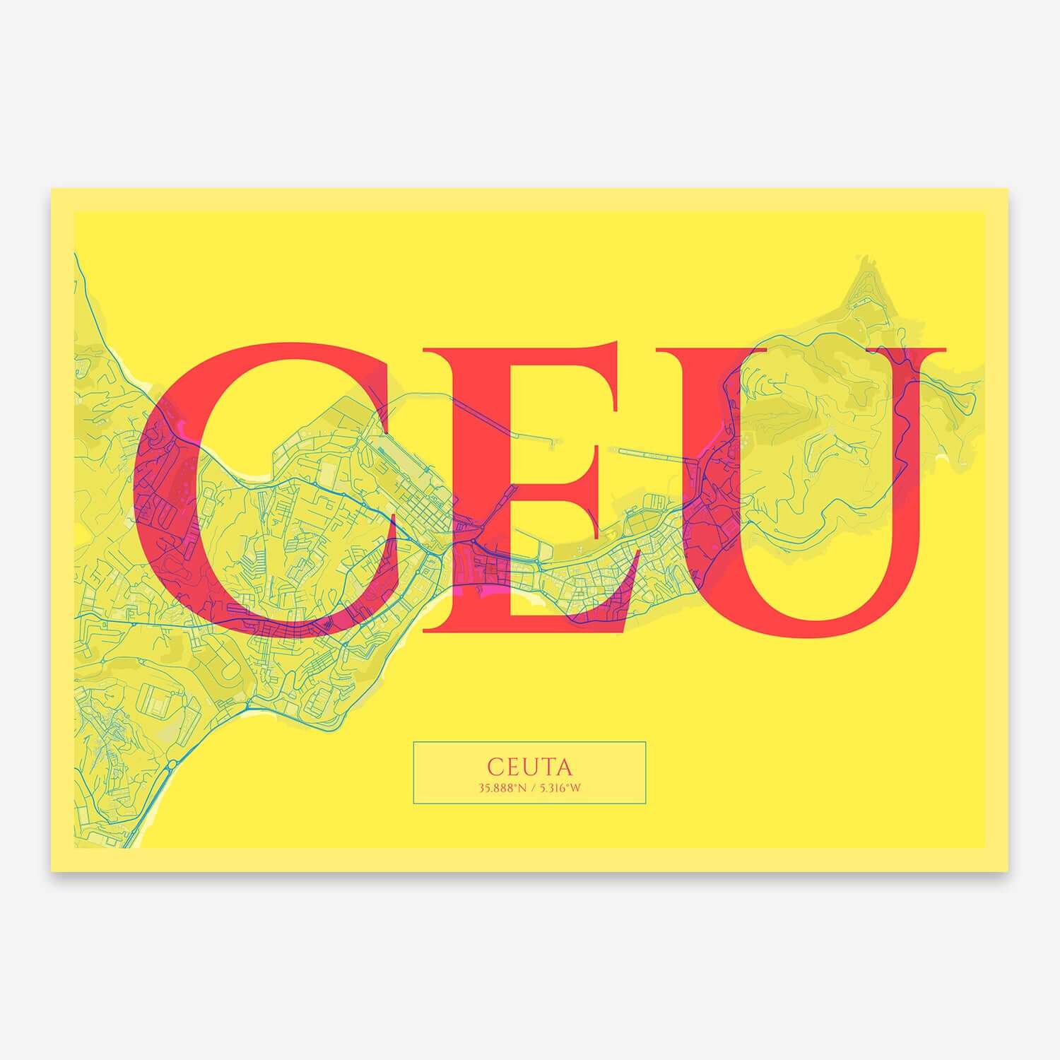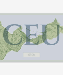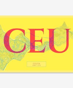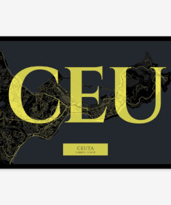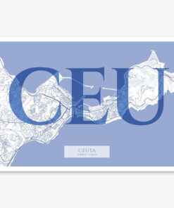 Personalize this Ceuta Poster V06, designed with a composition of the map of Ceuta and the letter CEU or purchase it with this graphic design ready to add to your cart. A special gift to decorate the walls of lovers of graphic design and typography.