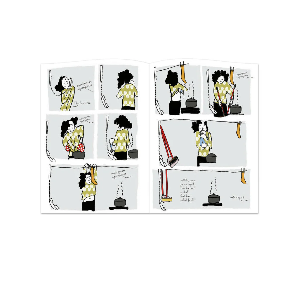 Ja ens va explicar l’embaràs i el part de la Júlia, la seva primera filla, a 40 semanas, un llibre que va dibuixar aprofitant el temps que es té quan encara no t’has convertit en mare. Ara ens explica la seva experiència de ser mare i el segon embaràs, totalment diferent, en un llibre dibuixat a les tardes, amb un somriure a la boca, amb un bebè agafat al pit i unes ulleres profundes sota els ulls.