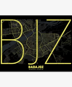 Personalize this Badajoz Poster V07, designed with a composition of the map of Badajoz and the letter BJZ or purchase it with this graphic design ready to add to your cart. A special gift to decorate the walls of lovers of graphic design and typography.
