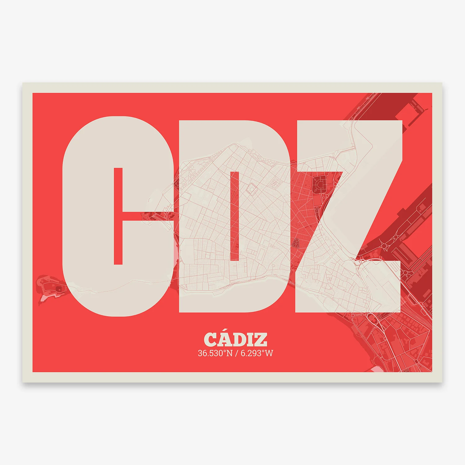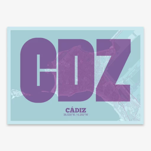 Personalize this Cadiz Downtown Poster V02, designed with a composition of the map of Cadiz Downtown and the letters CDZ or purchase it with this graphic design ready to add to your cart. A special gift to decorate the walls of lovers of graphic design and typography.