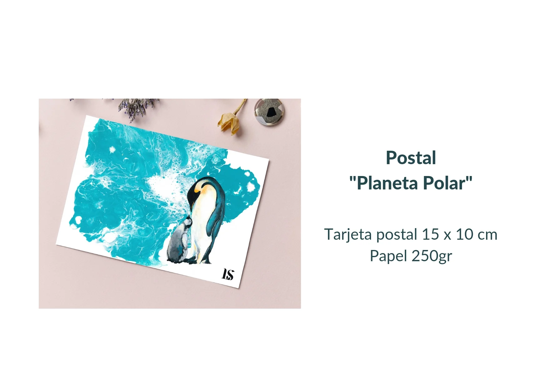 Este pack incluye bolsa de tela natural algodón BIO, bidón acero inoxidable y una tarjeta postal de la pintura “Planeta Polar”.