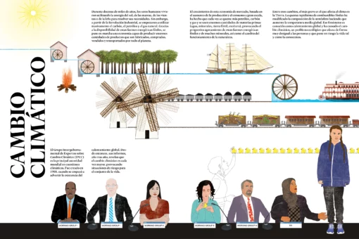 Durante decenas de miles de años, los seres humanos vivieron utilizando la energía del sol, de las mareas, de los vientos o de la leña para resolver sus necesidades. Sin embargo, a partir de la Revolución Industrial, se empezaron a utilizar masivamente el carbón, el petróleo y el gas natural. Gracias a ello, se puso en marcha una economía capaz de producir enormes cantidades de productos que son fabricados, comprados, vendidos y transportados por todo el planeta, pero este crecimiento ha provocado el calentamiento global y con él, el cambio climático, un problema ecológico que pone en riesgo la vida tal y como la conocemos.