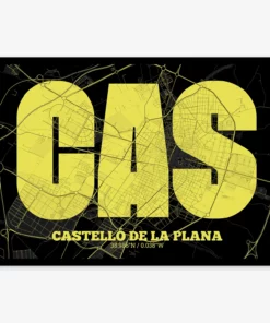 Personalize this Castellon Poster V02, designed with a composition of the map of Castellon and the letters CAS or purchase it with this graphic design ready to add to your cart. A special gift to decorate the walls of lovers of graphic design and typography.