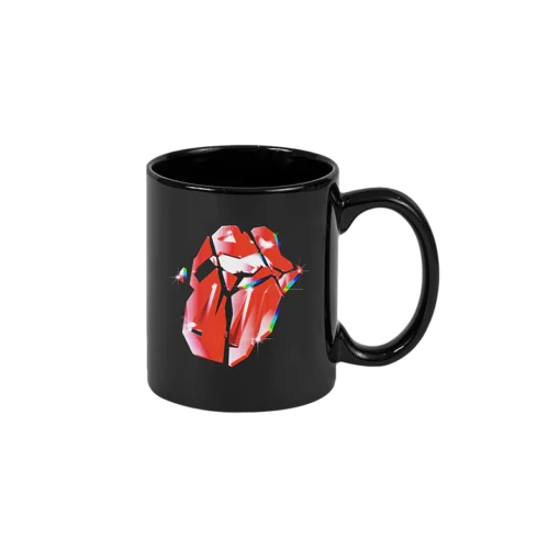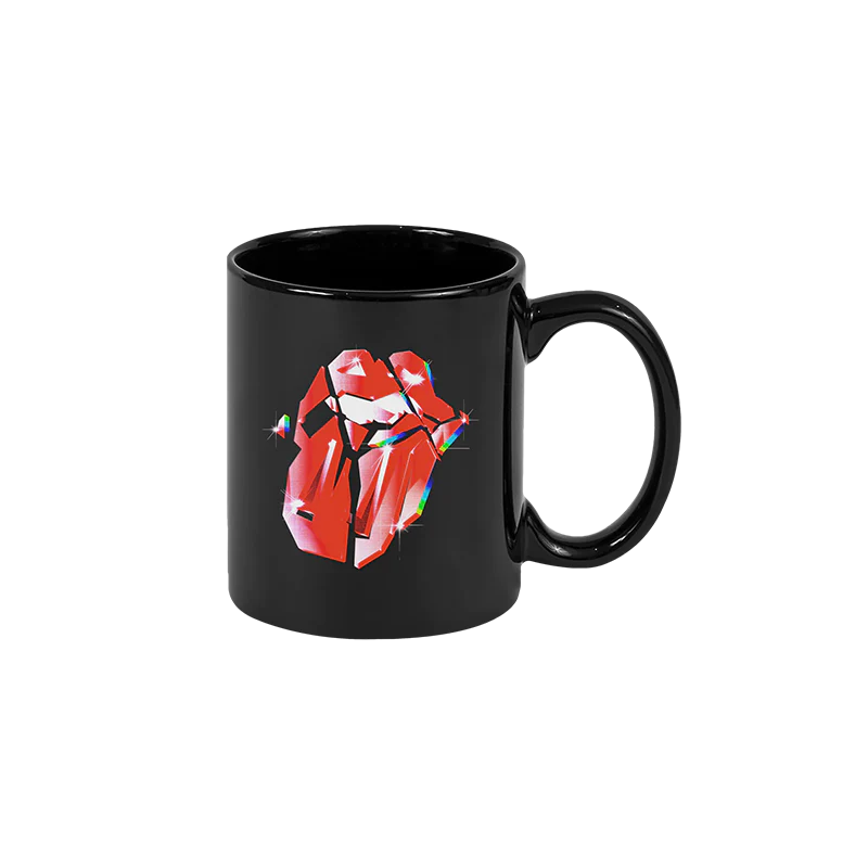 ¡Ideal para café o té! La taza Diamonds Tongue presenta un logotipo iridiscente en la lengua de Hackney Diamonds impreso en una taza negra.