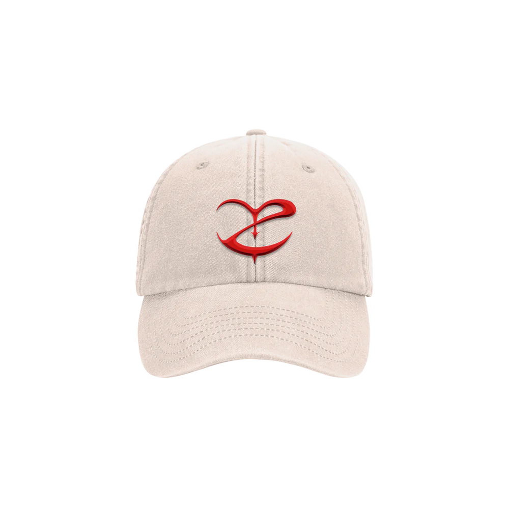 Gorra blanca de acabado vintage con el logotipo de La Zowi bordado en parte frontal.
