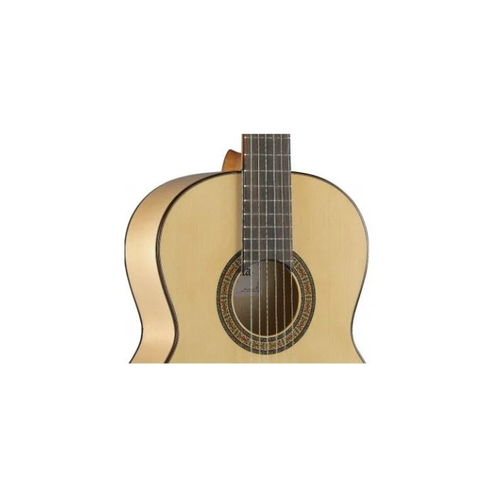 Con una tapa de abeto alemán macizo y un color característico por la utilización de sicomoro en aros y fondos, la guitarra Alhambra 3F tiene una estética muy flamenca. Su tono es ligeramente más brillante, en general, que una guitarra clásica, y con un sonido tremendo. El rasgueo con esta guitarra suena de una manera sorprendente, muy flamenco, precusivo y con buen volumen. Además, es una guitarra que define muy bien la melodía y los bajos, aún siendo poderosos, están muy equilibrados.
