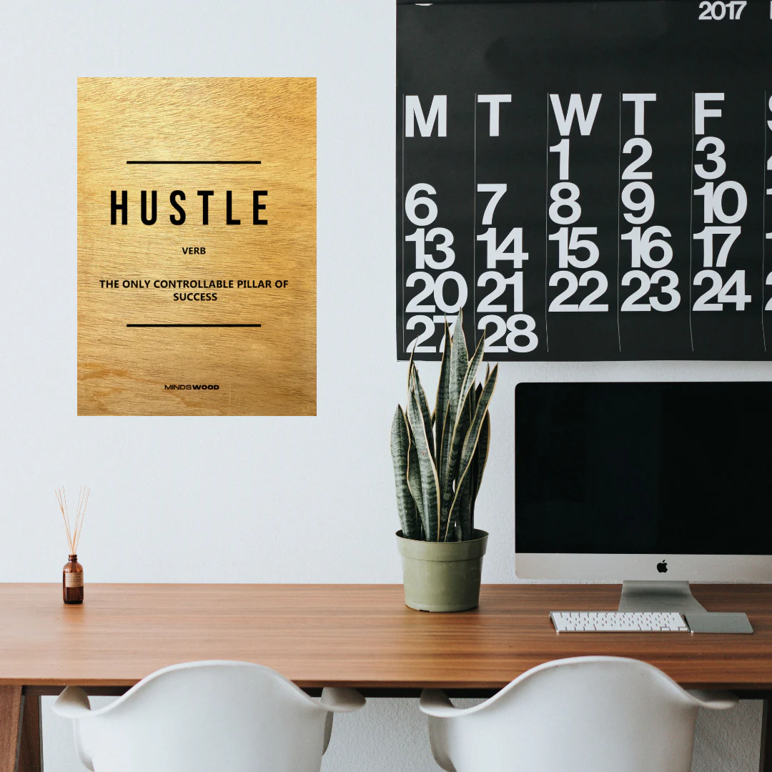 Inspírate con este cuadro de Hustle en madera y grabado a láser creado exclusivamente para ti.