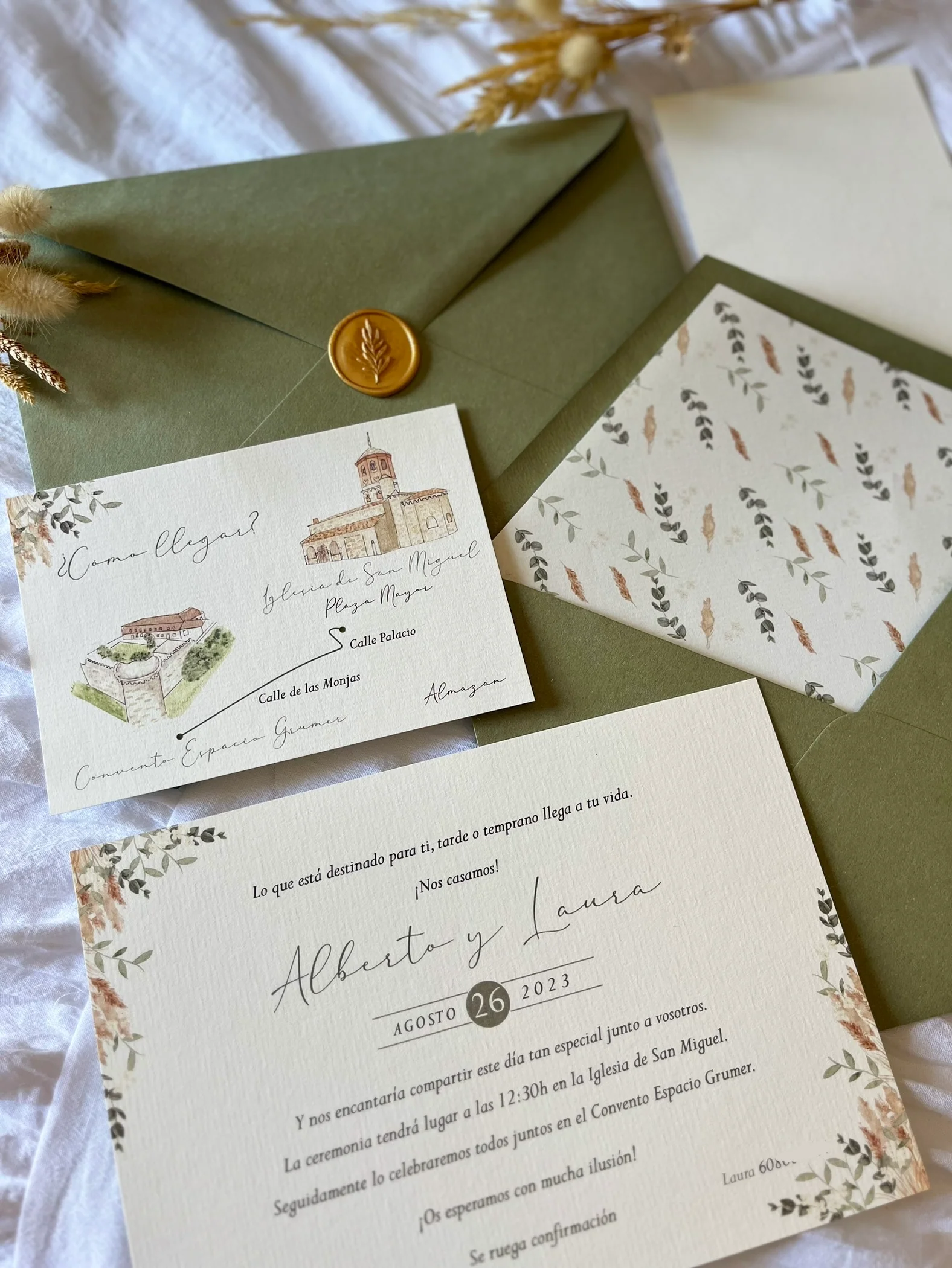 El precio incluye la invitación, los sobres y complementos van por separado, estaremos encantados de asesorarte de cuál es el más indicado para tu invitación.