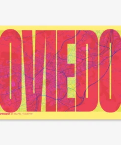 Personalize this Oviedo Poster V09, designed with a composition of the map of Oviedo and the letters of its full name. Perfect for decorating any corner of your home and taking a little piece of this city with you. A cool gift to decorate the walls of lovers of graphic design and typography.