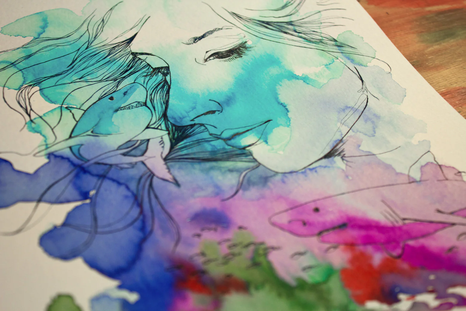 La lámina está impresa digitalmente a partir de la ilustración original. El papel es de acuarela de 300 gr de suave textura en formato A4: 29,7 x 21 cm.