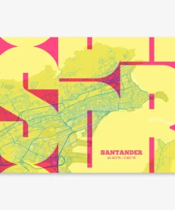 Personalize this Santander Poster V03, designed with a composition of the map of Santander and the letters SDR or purchase it with this graphic design ready to add to your cart. A special gift to decorate the walls of lovers of graphic design and typography.
