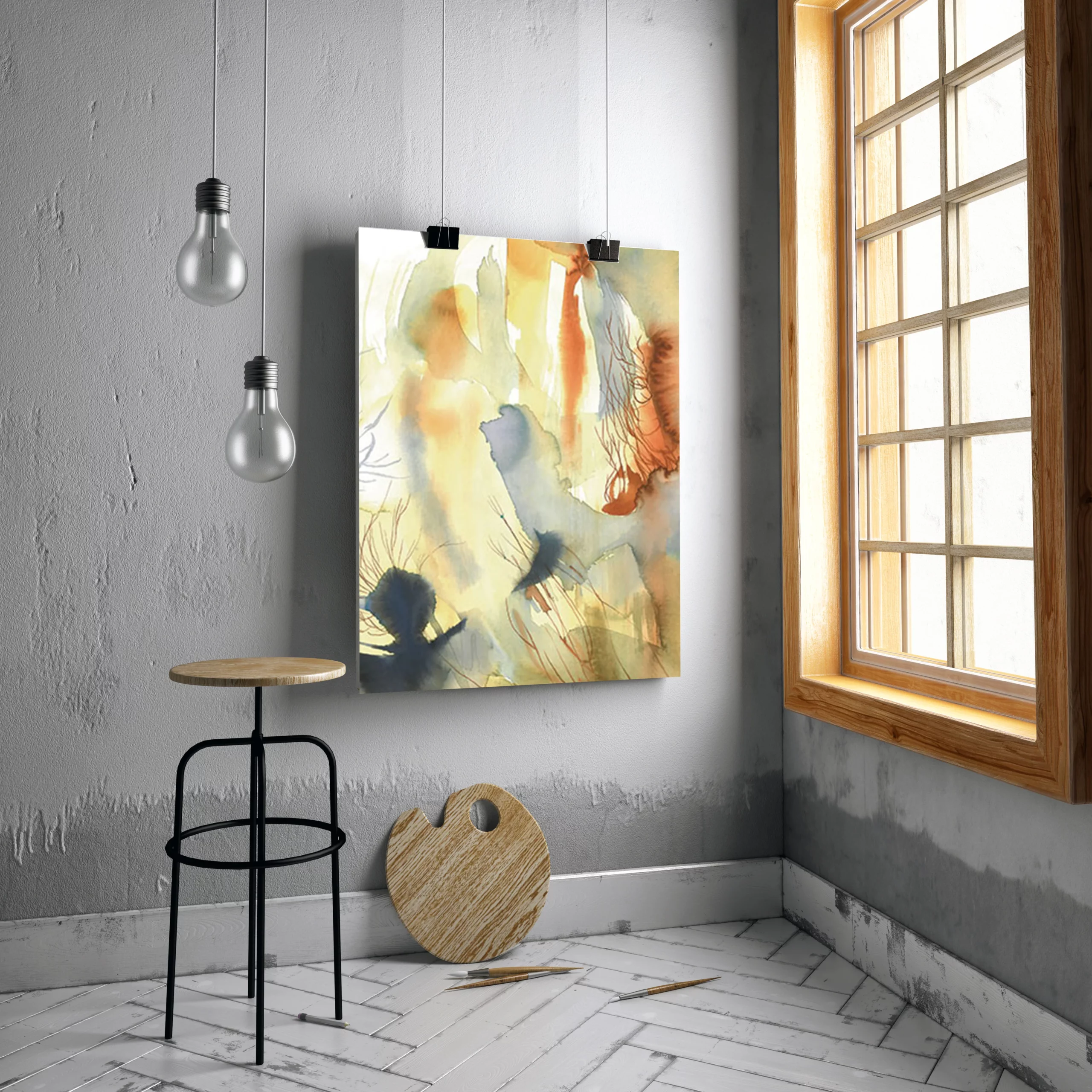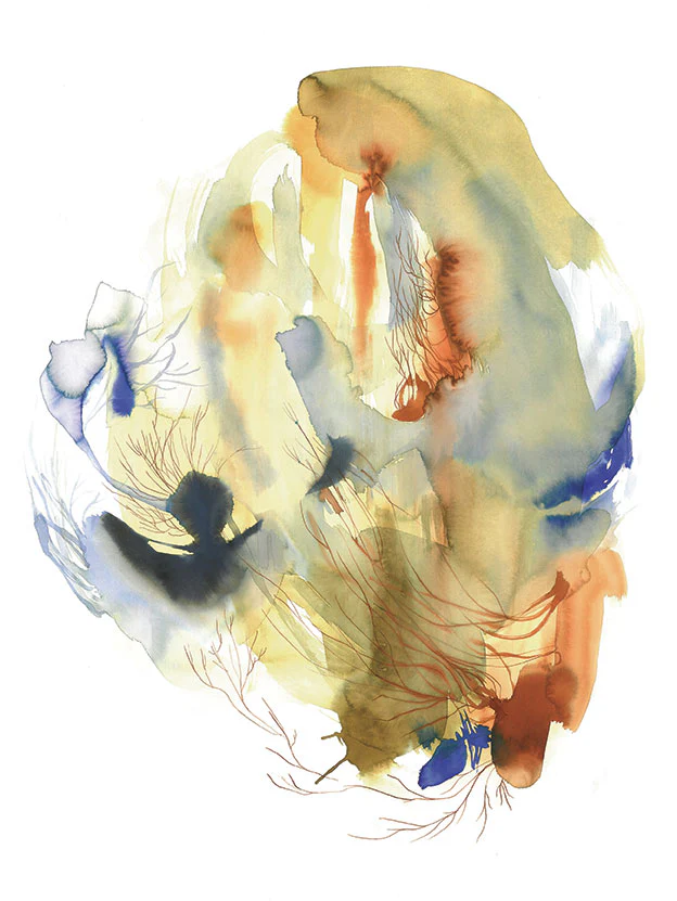 Obra abstracta realizada en acuarela. Inspirada en el hexagrama del I ching: La evolución.